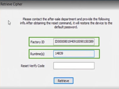 توجه داشته باشید که هر زمان که اقدام به بازیابی رمز عبور از طریق نرم افزار Search Config Tool می کنید. کد ارسالی به واحد پشتیبانی، وارد کردن کد دریافتی از واحد پشتیبانی و بازیابی رمز باید در یک روز انجام گیرد. زیرا کد ارسال شده از طرف پشتیبانی تنها در همان روز معتبر است.