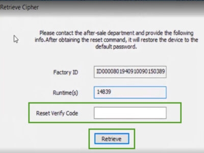 هنگام ورود به سیستم بر روی گزینه Forget Password کلیک کنید. دقت کنید ایمیلی که هنگام تعیین رمز وارد کرده اید، یک ایمیل در دسترس و معتبر باشد. هنگامی که گزینه Forget Password را انتخاب کردید یک کد از سمت تیم پشتیبانی به ایمیل شما ارسال می شود. کد ارسال شده را در قسمت مربوطه وارد کنید. سپس می توانید رمز عبور جدید را انتخاب و وارد کنید. در انتها گزینه ی Reset Network cameras Passwords را انتخاب کنید. دستگاه و دوربین ها شروع به ریست شدن می کنند. دقت کنید رمز عبور جدید را به خاطر بسپارید تا در مواقع لزوم با مشکل مواجه نشوید.